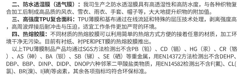 产品特点: EVA夹胶玻璃胶片在受热前为两表面均呈浅的半透明蒲膜,在受热固化后则具备非常杰出的透明性以及与玻璃。间的产生非常高的黏结强度。能适用干各种玻璃的夹胶工艺,如压花玻璃、钢化玻璃、弯曲玻璃等等、建筑夹层玻璃、装饰夹层玻璃,防盗玻璃、塑料夹层板。 EVA夹胶玻璃胶片的优点: 口高透明度、高粘着力、耐冲击性、良好的耐久性。 口可以抵抗高温、潮气、紫外线等等,并且能长时间的在户外使用。 口在室温下存放就可以了,EVA的粘着力不受湿度和吸水性胶片的影响。口相比PVB有更强的隔音效果,尤其是高频率的音效。口低熔点,易流动。