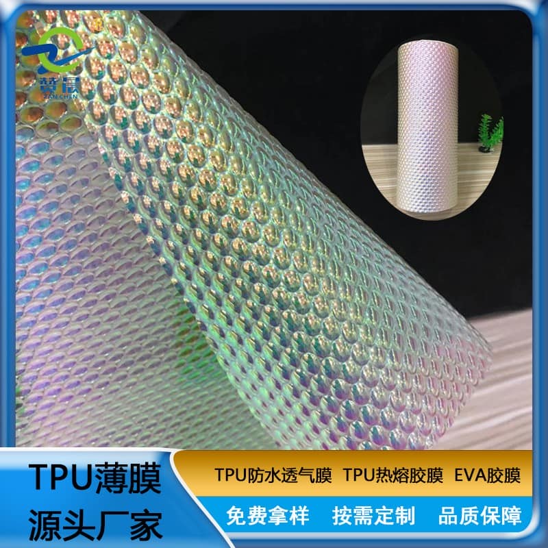 TPU彩虹膜的神奇效果在于不同距离、不同角度彩虹膜基材本身丰富的光效应会呈现出完全不同的幻彩效果。