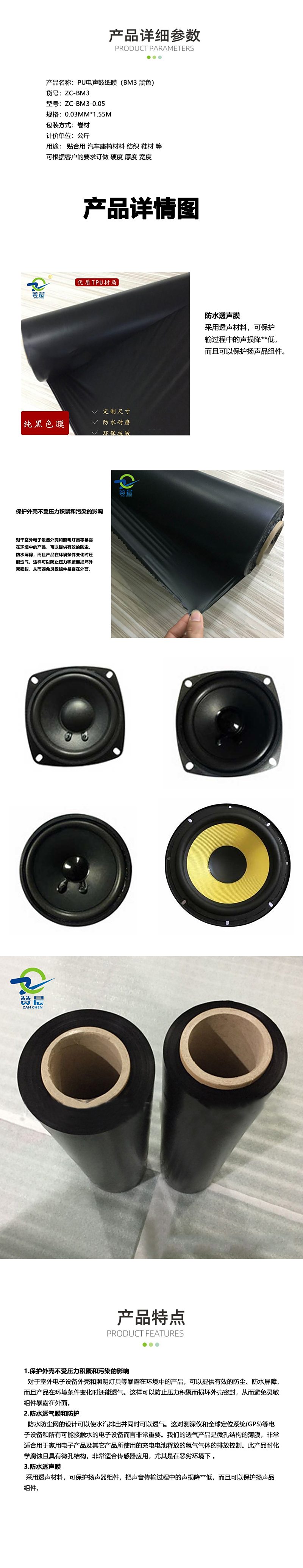 电声膜音响膜黑色单雾面TPU膜环保耐温喇叭tpu薄膜